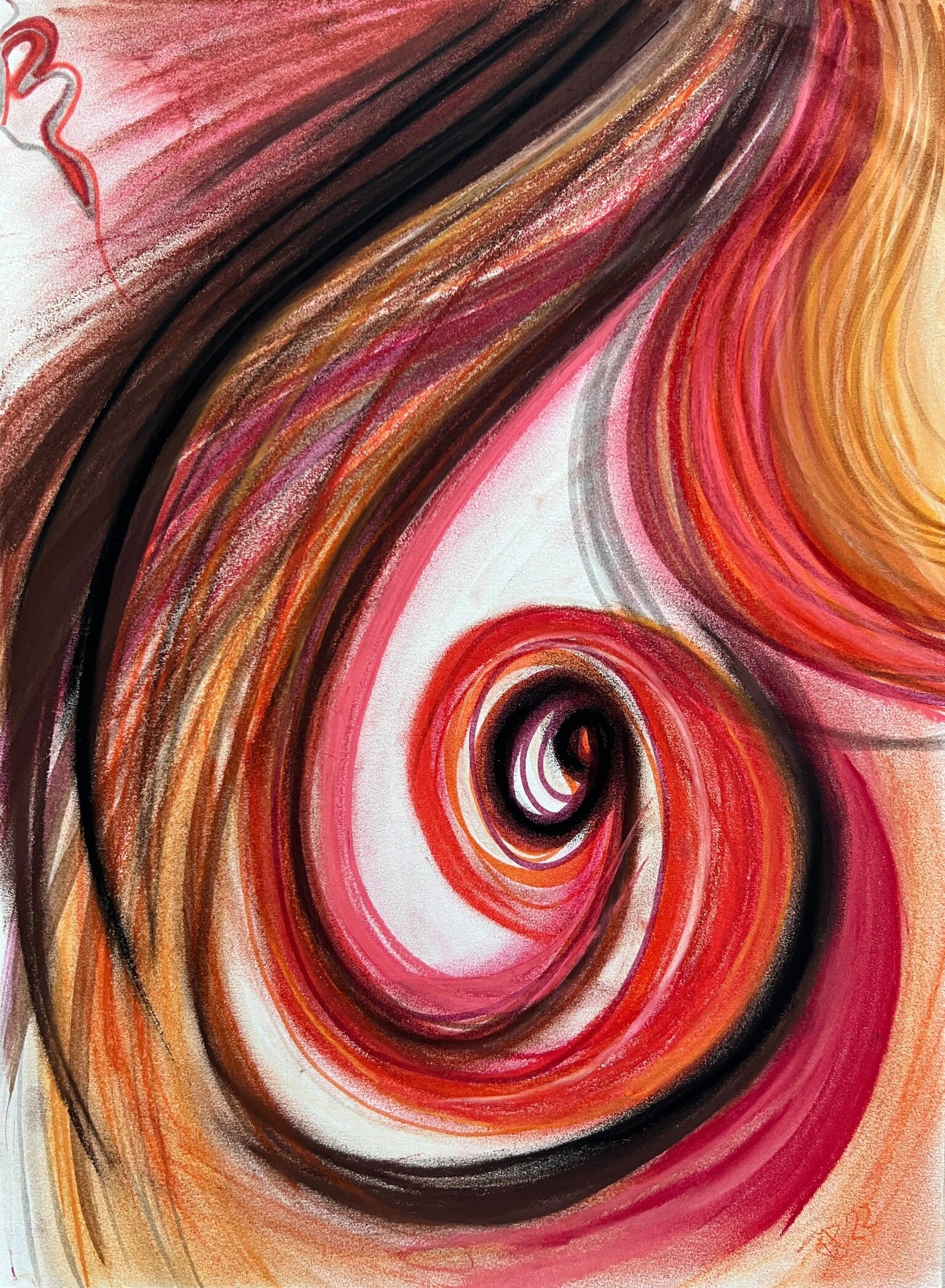 Kreide auf Papier, 297x420 mm. Erhältlich als Digitaldruck, in deiner Wunschgröße auf Leinen, individuell von mir veredelt.